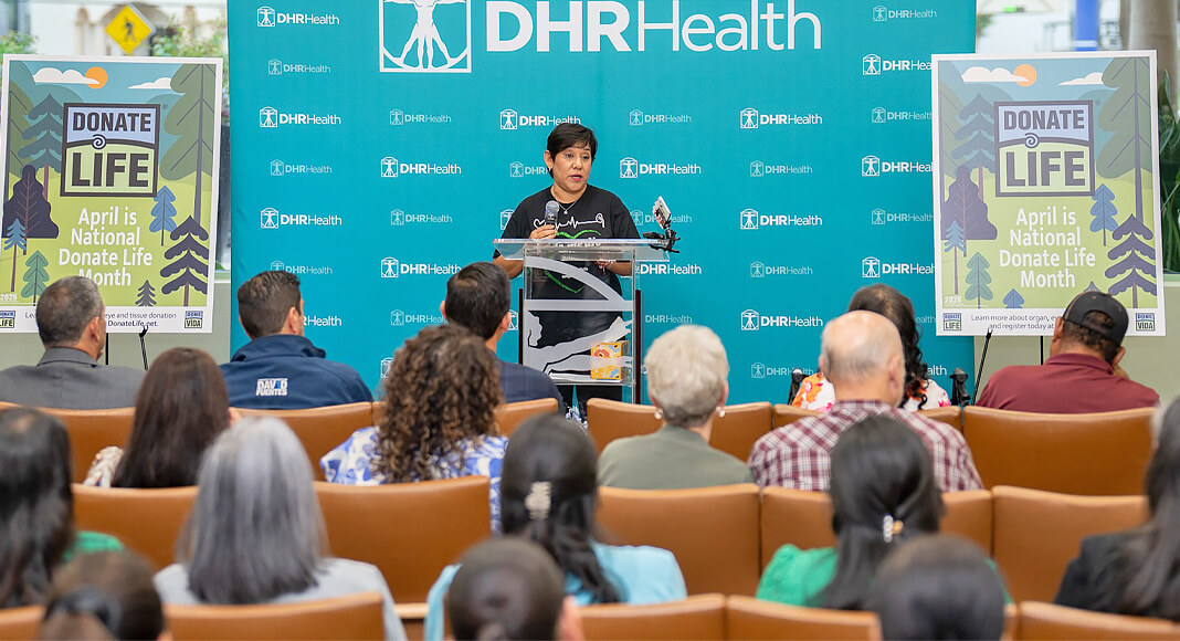 “As a child watching your mother worry, you feel helpless,” Salinas told the audience. After the family chose to proceed with the transplant at DHR Health, Salinas said that her fear was replaced by a sense of mission. “On the day of surgery, I wasn’t afraid because I knew something incredible was going to happen. I wasn’t going to lose something; I was giving something.”