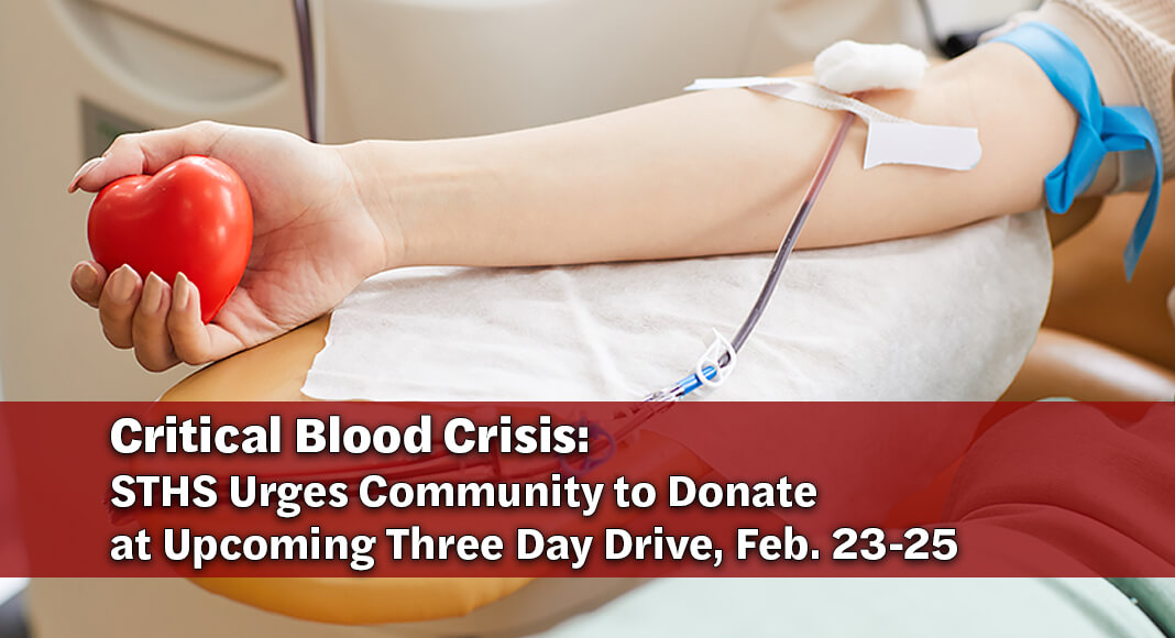 STHS is teaming up with South Texas Blood & Tissue – the sole blood provider for STHS’ facilities – to host a three-day community blood drive aimed at building up the supply in South Texas.