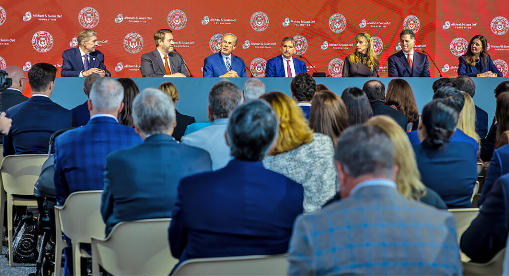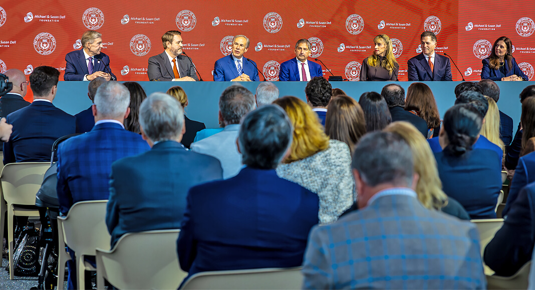 The Governor was joined by Dell Technologies CEO Michael Dell, Dell Foundation Board Chair Susan Dell, UT Board of Regents Chairman Kevin Eltife, UT-Austin President Jim Davis, Dell Medical School Dean and UT Senior Vice President for Medical Affairs Claudia Lucchinetti, UT MD Anderson President Peter Pisters, and other education and medical leaders.