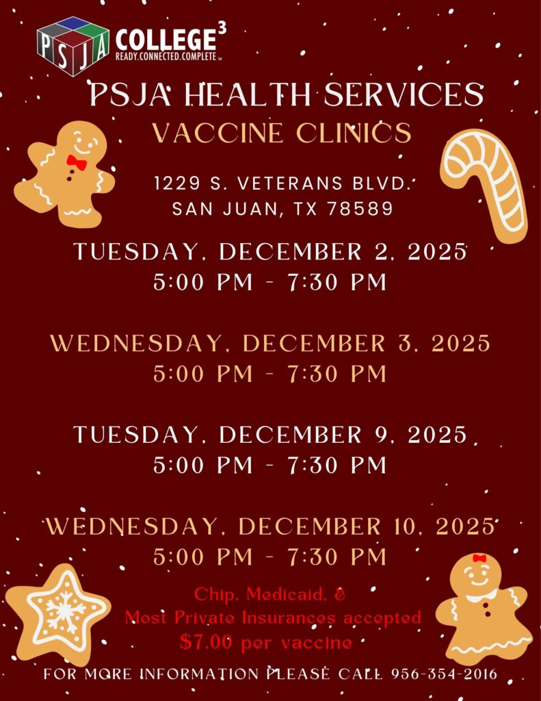 SAN JUAN The Pharr-San Juan-Alamo ISD (PSJA ISD) Health Services Department will host a series of Vaccine Clinics to support the ongoing health and well-being of PSJA ISD students.