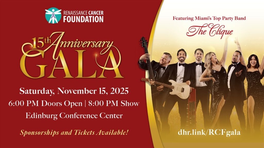 The Renaissance Cancer Foundation, a non-profit organization with DHR Health, is excited to announce its 15th Anniversary Gala, featuring the Miami sounds of music group, The Clique. The event is set to take place on November 15, 2025 at the Edinburg Conference Center at Renaissance, located at 118 Paseo Del Prado in Edinburg. Doors will open at 6:00 p.m. with the show starting at 8:00 p.m. The event will feature a cocktail hour, heavy hors d’oeuvres, silent auction and live music. The after party will include coffee, dessert, and the continuation of the silent auction. All proceeds will benefit the Renaissance Cancer Foundation.