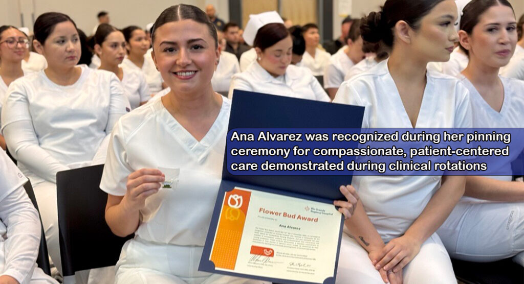 Alvarez, 28, was surprised with the DAISY Award for Extraordinary Nursing Students (formerly known as the Flower Bud award) during her pinning ceremony by Rio Grande Regional Hospital, recognized for her compassionate care and commitment to patients.