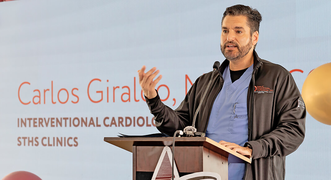 “I’ve seen tremendous growth at STSH Heart over my 15 years working at the facility,” says Carlos Giraldo, MD, FACC, a boardcertified interventional cardiologist with STHS Clinics, who spoke during the event. “We have continued to evolve and expand to meet the growing healthcare needs of our community surrounding cardiovascular disease, developing programs featuring advanced hemodynamic support options and increased our use of technologies like CardioMEMS, a valuable tool for monitoring heart failure. STHS Heart consistently pushes the envelope and adapts in ways that allow us to better support the population we proudly serve.”